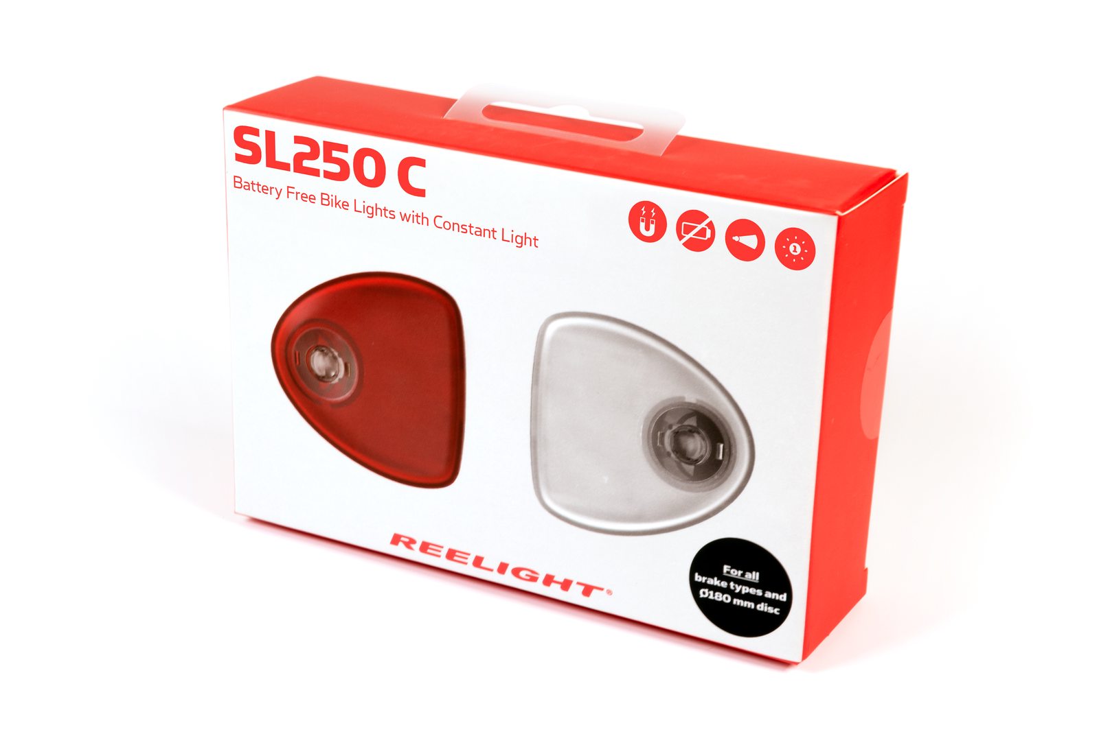 Reelight SL250 C jsou světla fungující na indukčním principu. Nepotřebují baterie, přičemž na rozdíl od klasického dynama nebo dynama v náboji je lze snadno namontovat na jakýkoli typ kola a prakticky nekladou žádný odpor při jízdě.