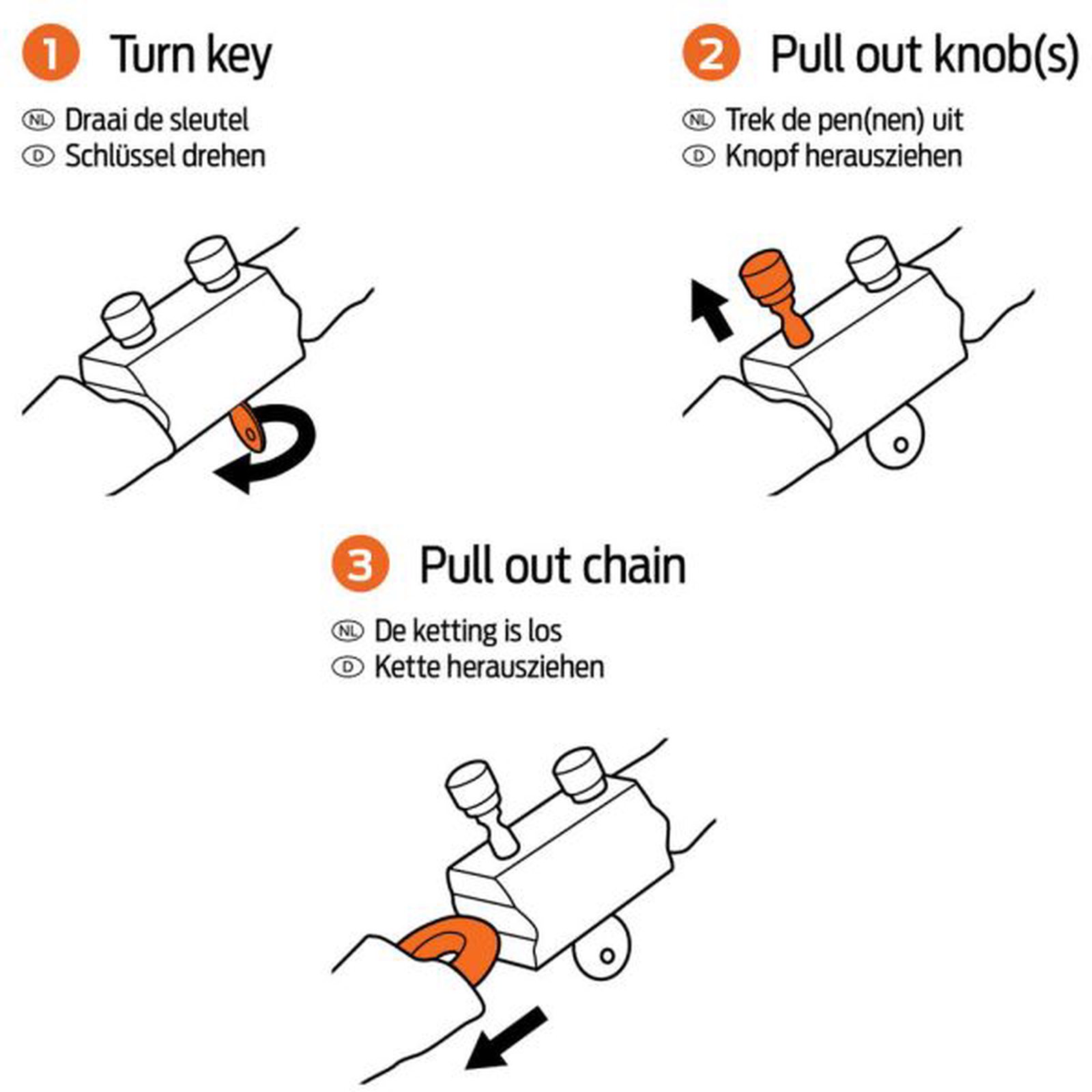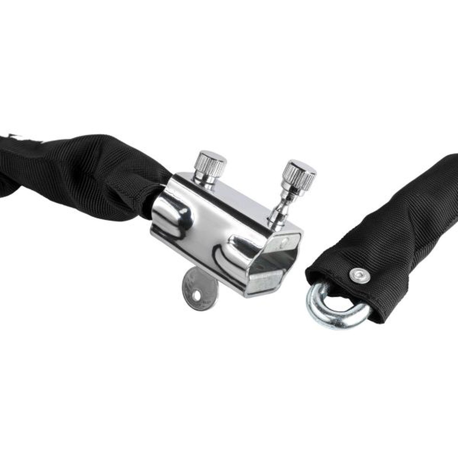 Řetěz má délku 100 cm a průměr článků je 8 mm. Dodává se se 3 klíči. Černé pouzdro chrání vaše kolo před poškrábáním.