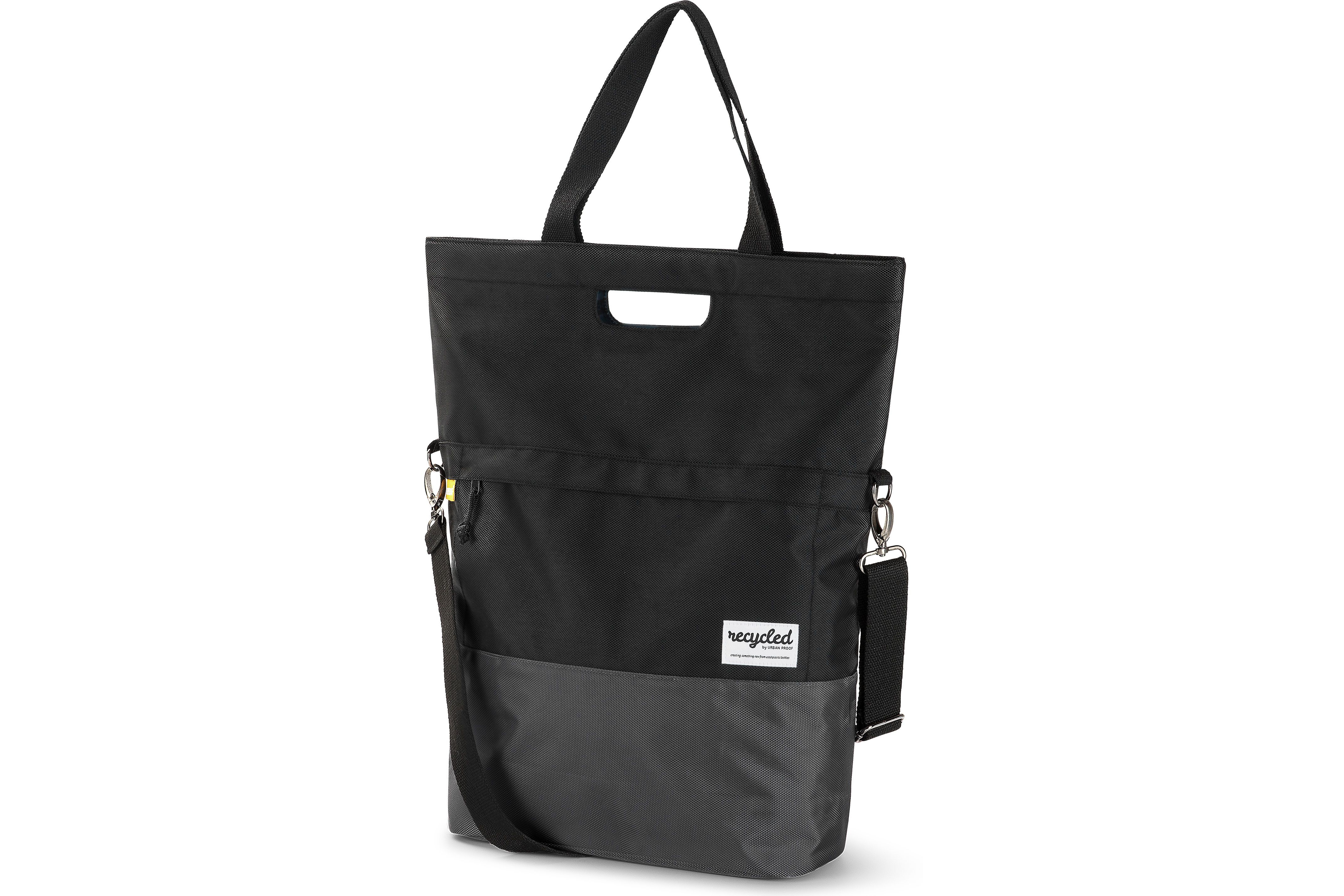 Urban Proof 20L shopper bicycle bag is designed in such a way that it is very user-friendly, but also looks very nice for daily use. It is a sustainable bag made from recycled PET material (RPET). The spacious bicycle bag has a capacity of 20 liters and can easily be closed with the magnetic closure. With the attachment hooks that are on the back of the bag, the shopper bag is easy to attach to the back of the bicycle. These hooks are concealed with a zipper. The Urban Proof bicycle bag has a handle, a short strap and a shoulder strap so that you can carry the bag in any desired way. There is a separate pocket on the front and inside to easily store your keys, wallet and phone.